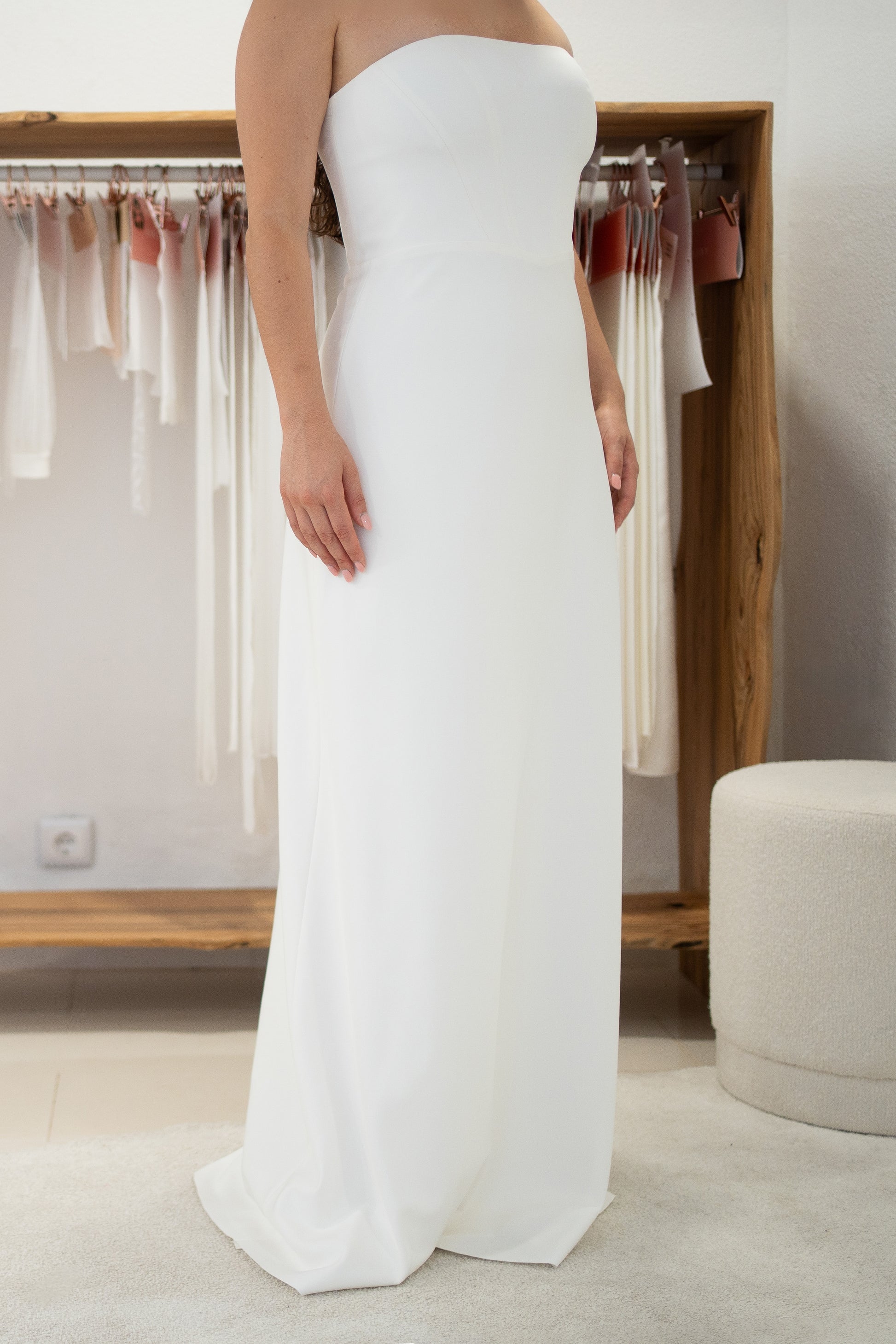 Our wedding dresses are custom-made to ensure the perfect fit. Please book an appointment for a fitting session.